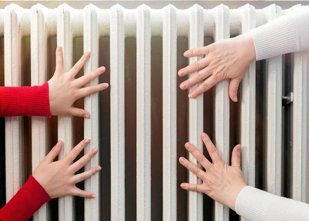 Handen är inte en speciellt bra termometer, handen kan känna en varm temperatur på radiatorn om ytan (vattnet i radiatorn) är högre temperatur än handen och kall om ytan är kallare än handen: Alltså bara den relativa temperaturen. Radiatorns metalliska yta leder värme bra och även några graders skillnad kan upplevas som varmt eller kallt. Handflatans temperatur är normalt ca. 33 grader. t.ex. vid en utetemperatur på +5 grader kan tilloppstemperaturen vara 38 grader och retur (vid radiatorns nedre kant) 28 grader, då känns det med handen att det är kallt. Vi skall minnas att radiatorn fungerar (=avger värme) då dess temperatur är högre än rummets temperatur.